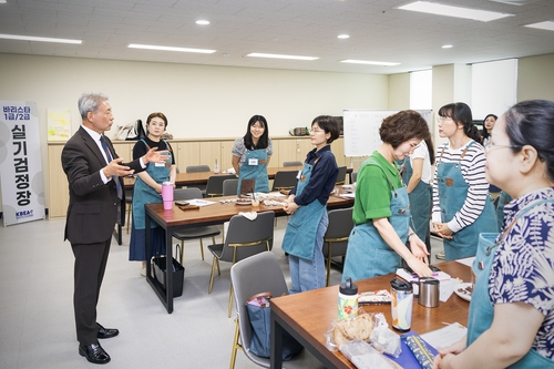 윤환 구청장은 이날 바리스타 실습장을 방문해 직접 '일일 고객'이 돼 커피를 주문하고 수강생이 만든 음료를 시음하며 교육 현장을 체험했다. 이어 수강생들과 지역 여성문화 프로그램 운영 및 지역 현안에 대해 자유롭게 의견을 나누며 진솔한 대화를 이어갔다.