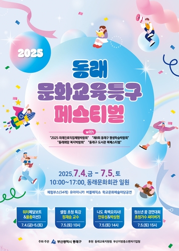 부산 동래구(구청장 장준용)는 오는 7월 4일부터 5일까지 양일간 동래문화회관 일원에서 '배우고 놀고 문화 속으로! 2025 동래문화교육특구 페스티벌'을 개최한다고 밝혔다.